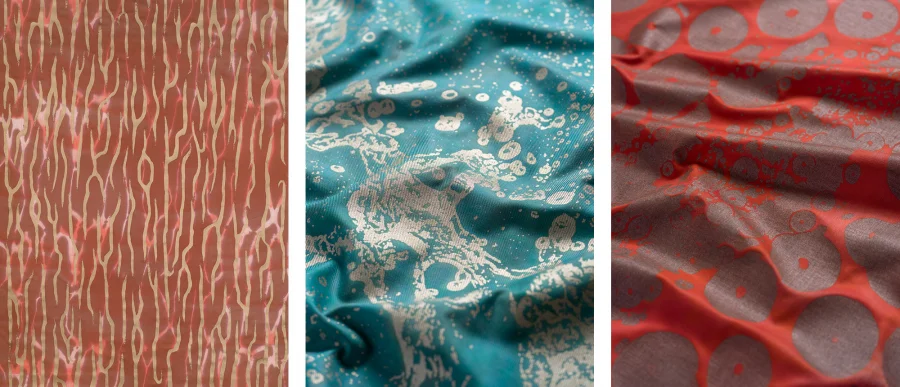 Riad became fascinated by Mariano’s drawings and quickly saw that an octopod’s mysterious qualities (its ability to transform itself in color, shape, and texture) could lend itself to fabrics. At their factory on the island of Giudecca, the company developed a technical means of producing particular tonal expressions: palettes of rich earthy hues “migrate, merge, and accumulate” to astonishing atmospheric effect. “We maintain an ongoing dialogue with Mariano by embracing the research, development, and experimentation that defined his scientific artistry,“ says Riad.” These techniques have been ideas for a long time, but we finally experimented and pushed our machines to color our fabrics in ways that hadn’t been done before. It was a breakthrough.”
