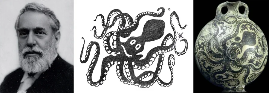 The drawing was rediscovered within Fortuny’s materials during a review of historical sketches and research documents preserved in the company archives. “We discovered and fell in love with Fortuny’s print of an octopus,” says Mickey Riad, the company’s creative director. “During our research process, we later encountered a remarkably similar octopus depicted on a Minoan ceramic vessel. This made perfect sense, given Mariano’s love of ancient Greece and Minoan art as inspiration for his work.”