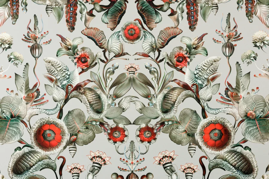With the resurgence of the wildly sublime Victorian aesthetic, botanical and scenic wall coverings are transforming interior landscapes. Belgian wallpaper studio Arte’s new Green House collection brings a revelatory expression to these naturalistic motifs. Developed in collaboration with Moooi, the Dutch design house founded by Marcel Wanders and Casper Vissers in 2001, and known for its edgy, eclectic aesthetic, the collection focuses on highly stylized flora and fauna. It’s an unexpected, up-close view of the natural world—almost as if we’re collectors looking at mysterious specimens through a magnifying glass.