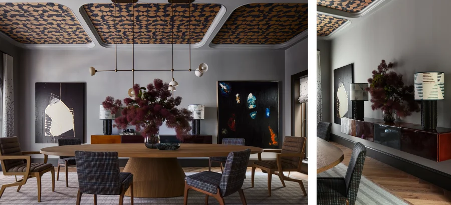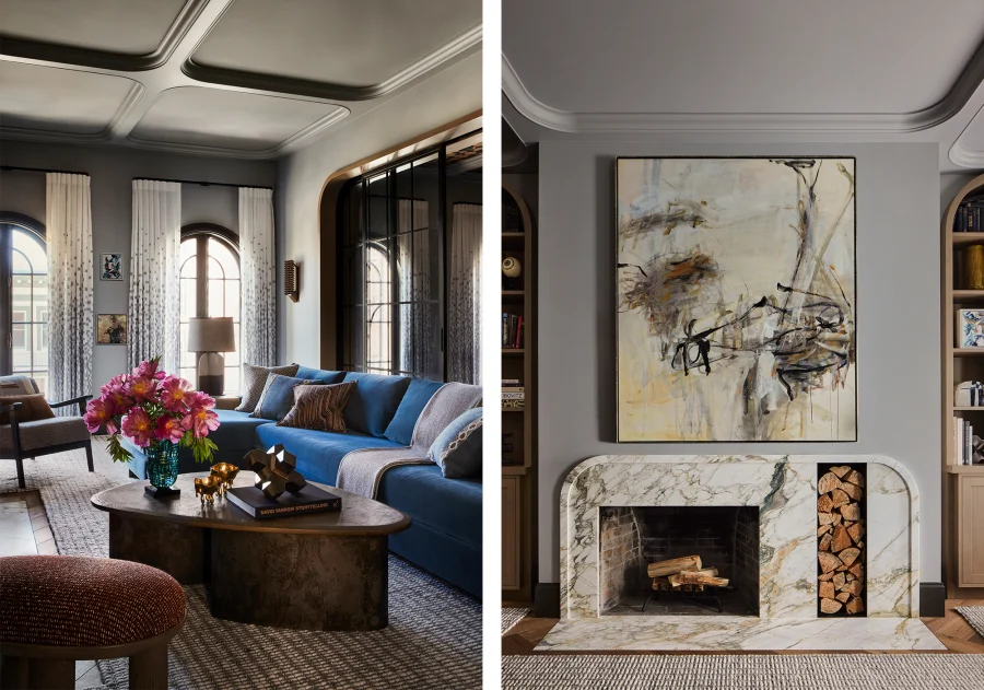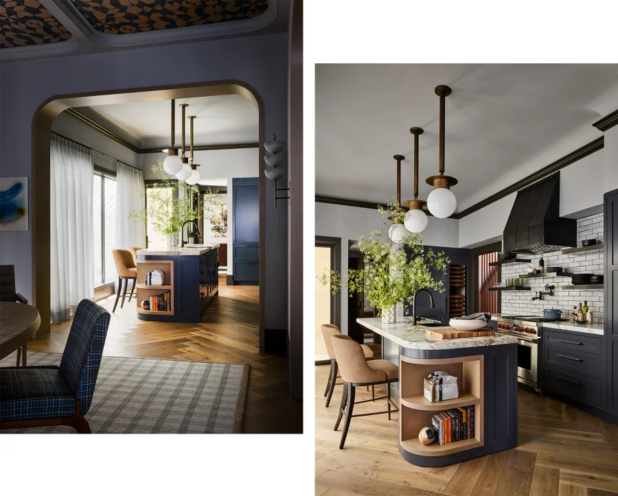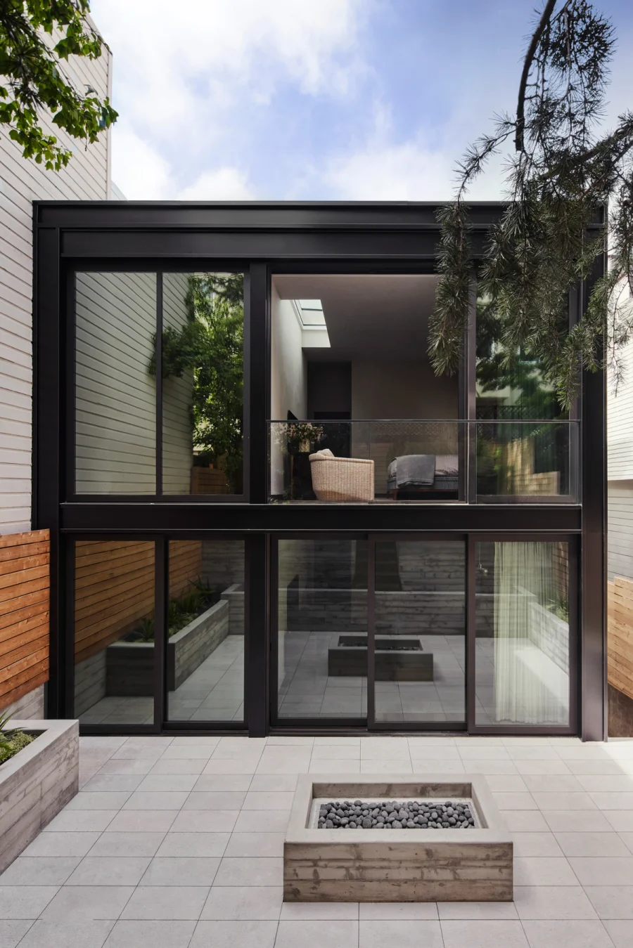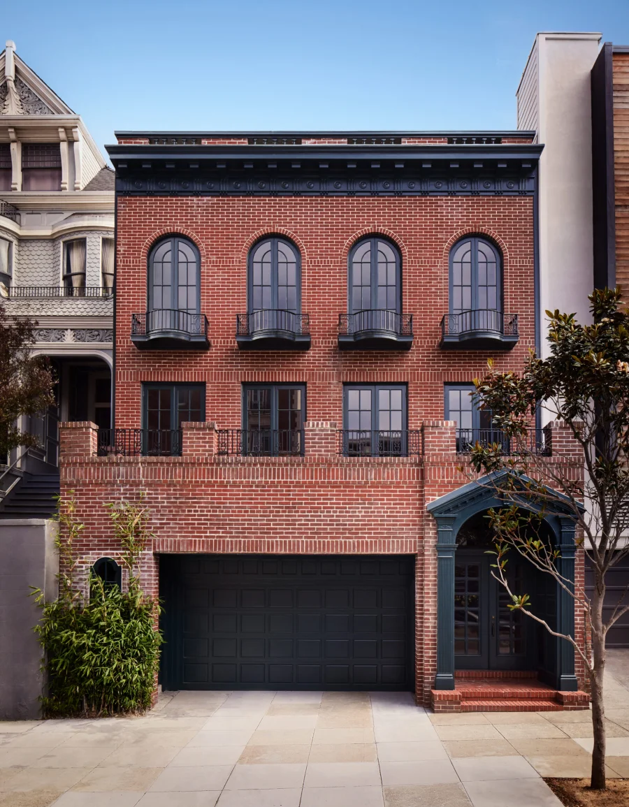 The home’s stately façade “has been lucky,” says Sturm. “It’s well-built, and the brick is tied back to keep it safe,” he adds. Short of small repairs and repainting the wood trim and pedimented front door, he left the front untouched. Inside, the interiors gave the brothers and their team, which included builder Clayton Timbrell, the freedom to embrace original details and re-create period-appropriate features, like new herringbone floors, while modernizing the property with an all-glass rear façade (“It opens everything up,” says Sturm). A new roof deck access panel also doubles as a skylight, brightening the top floor. “Everything in this home is precise, crisp, and clean, with a reverence for craftsmanship, but done in a contemporary aesthetic,” Sturm says. “We kept historical references, but we weren’t tied to the past,” he adds, and the subtle shift from traditional front rooms to more minimalist private spaces in the back is almost imperceptible.