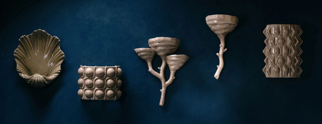 Alison Berger’s exquisite handblown crystal Offering No. 3 pendant, inspired, as the artist writes, “…by the ancient practice of creating altars….Flowers express generosity, Water, purification, and the Crystals for their mythical healing powers.” Through De Sousa Hughes.